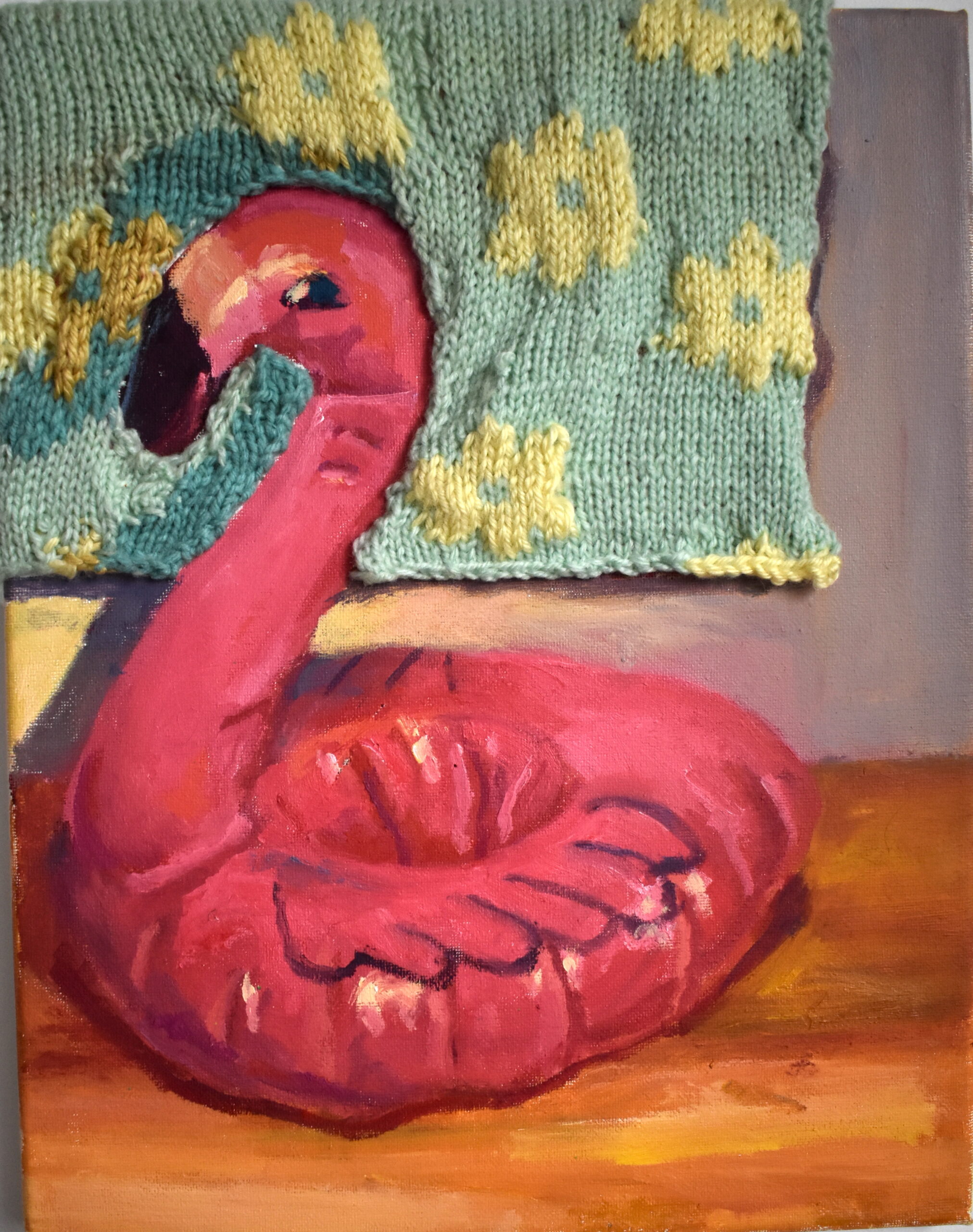 Float On, 14 x 11, Oil and hand knit acrylic yarn on canvas