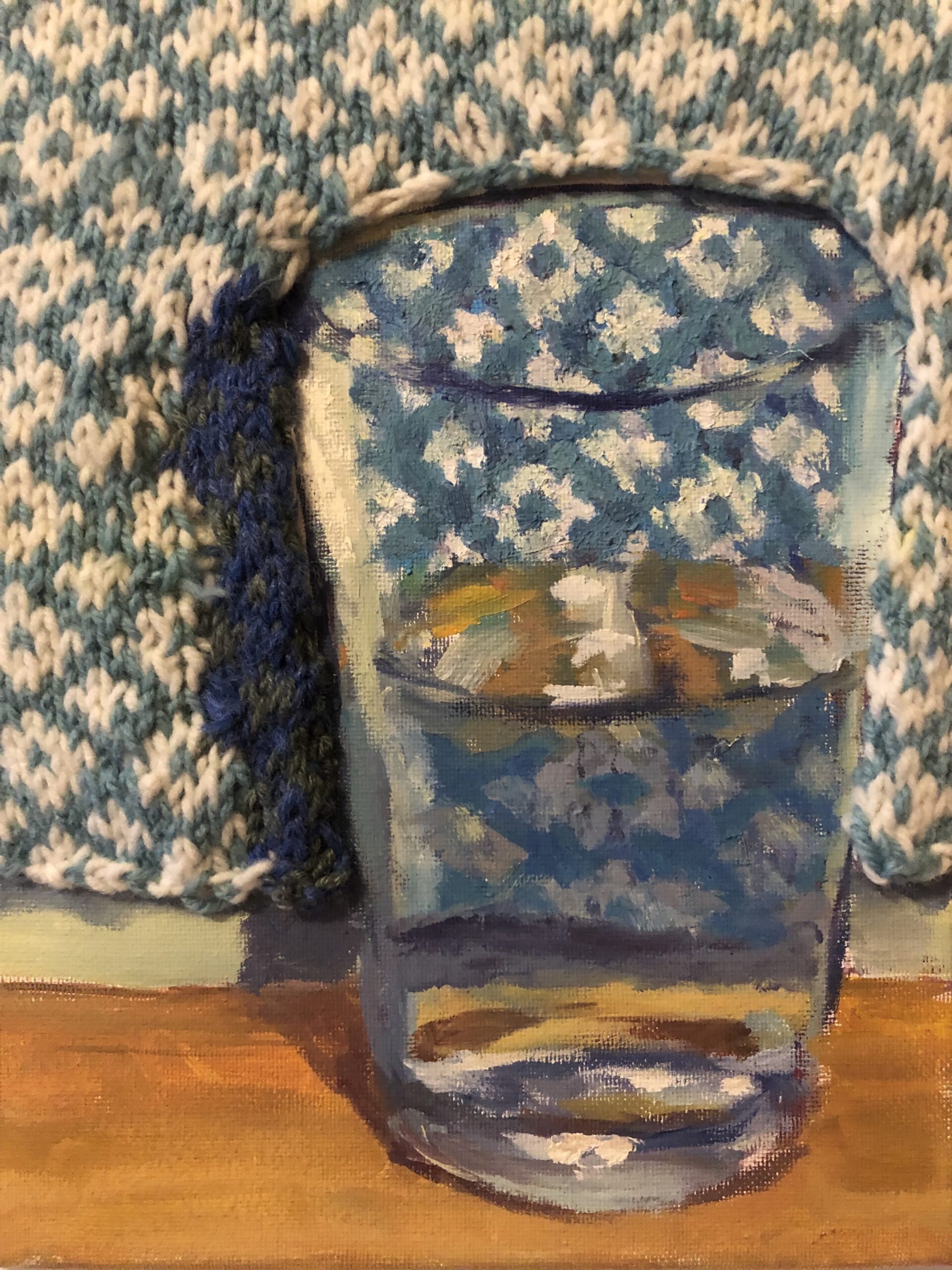 Slow Looking Morning, 10 x 8, Oil and hand knit acrylic yarn on canvas